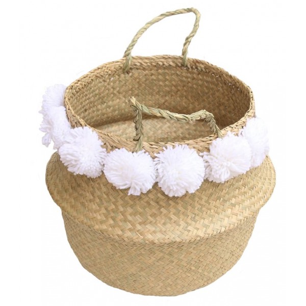 Ce panier boule repliable en jonc naturel sera idéal pour la décoration ou le rangement de votre maison: en cache-pot, sac à jouets ou encore replié en guise de corbeille, il sera parfait et ses pompons blancs apporteront une touche de déco à votre intérieur.
