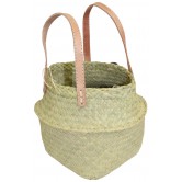 Cabas en paille avec des anses en cuir qui en font le tour ------------------ Plus de quantité ? Consulter notre site professionnel