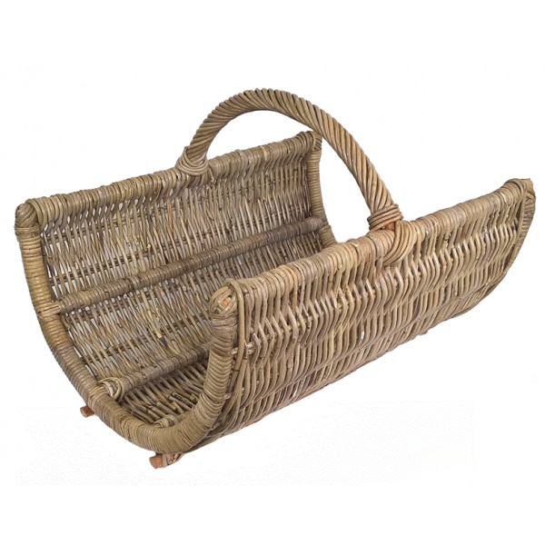 Panier à bois en rotin gris demi rond. 2 tailles au choix